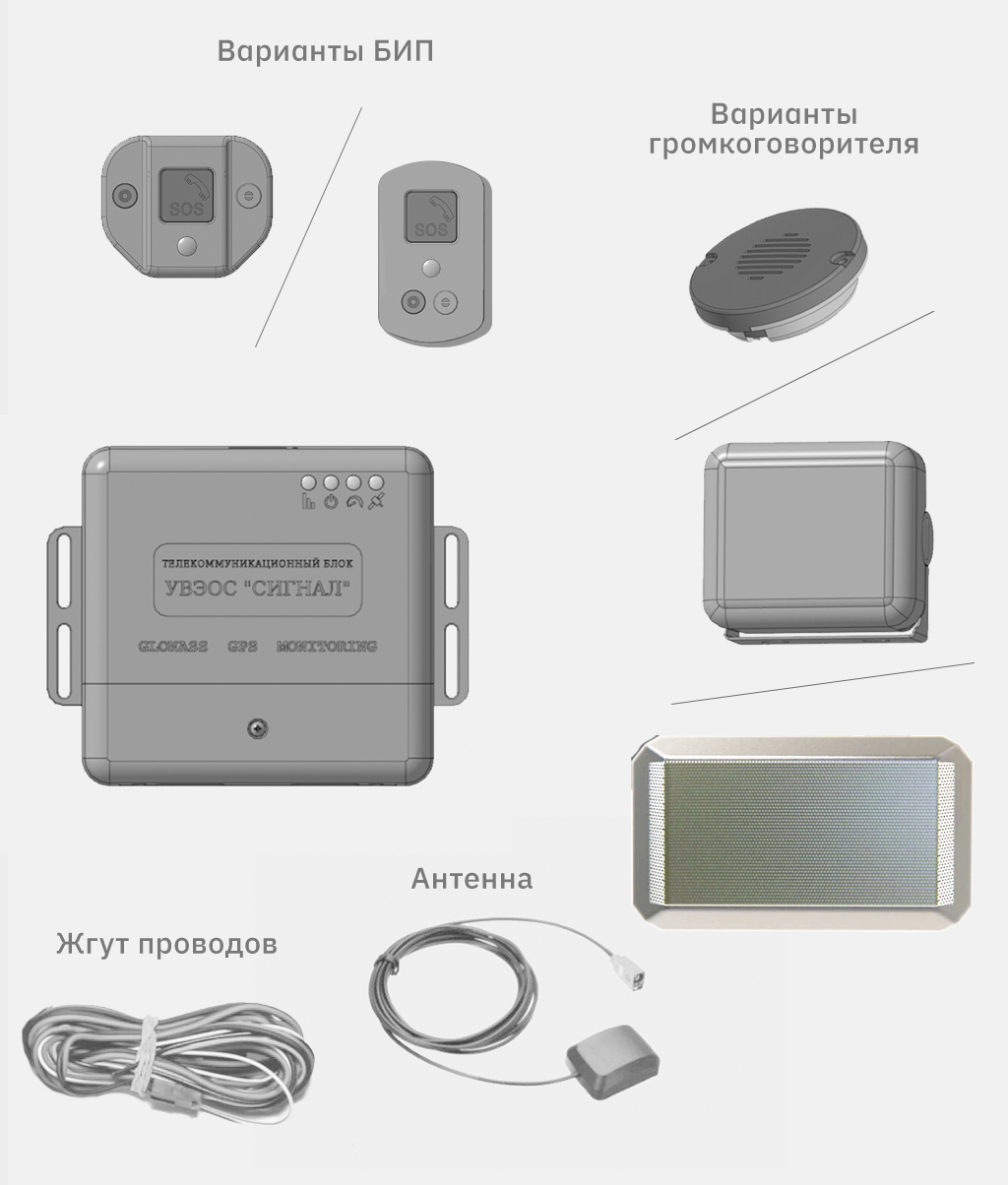 Стандартный комплект оборудования УВЭОС «СИГНАЛ-111» системы «ЭРА-ГЛОНАСС» включает в себя: